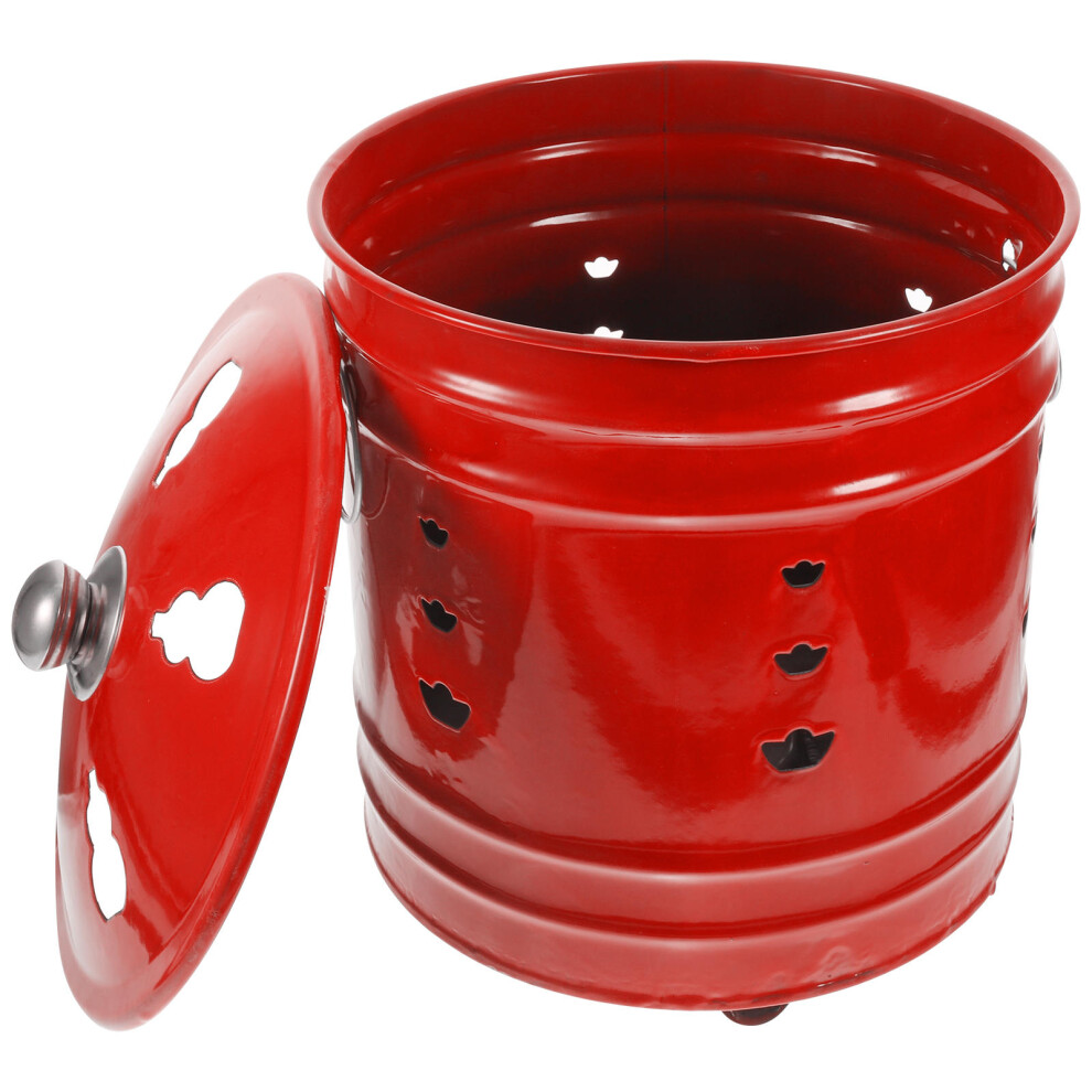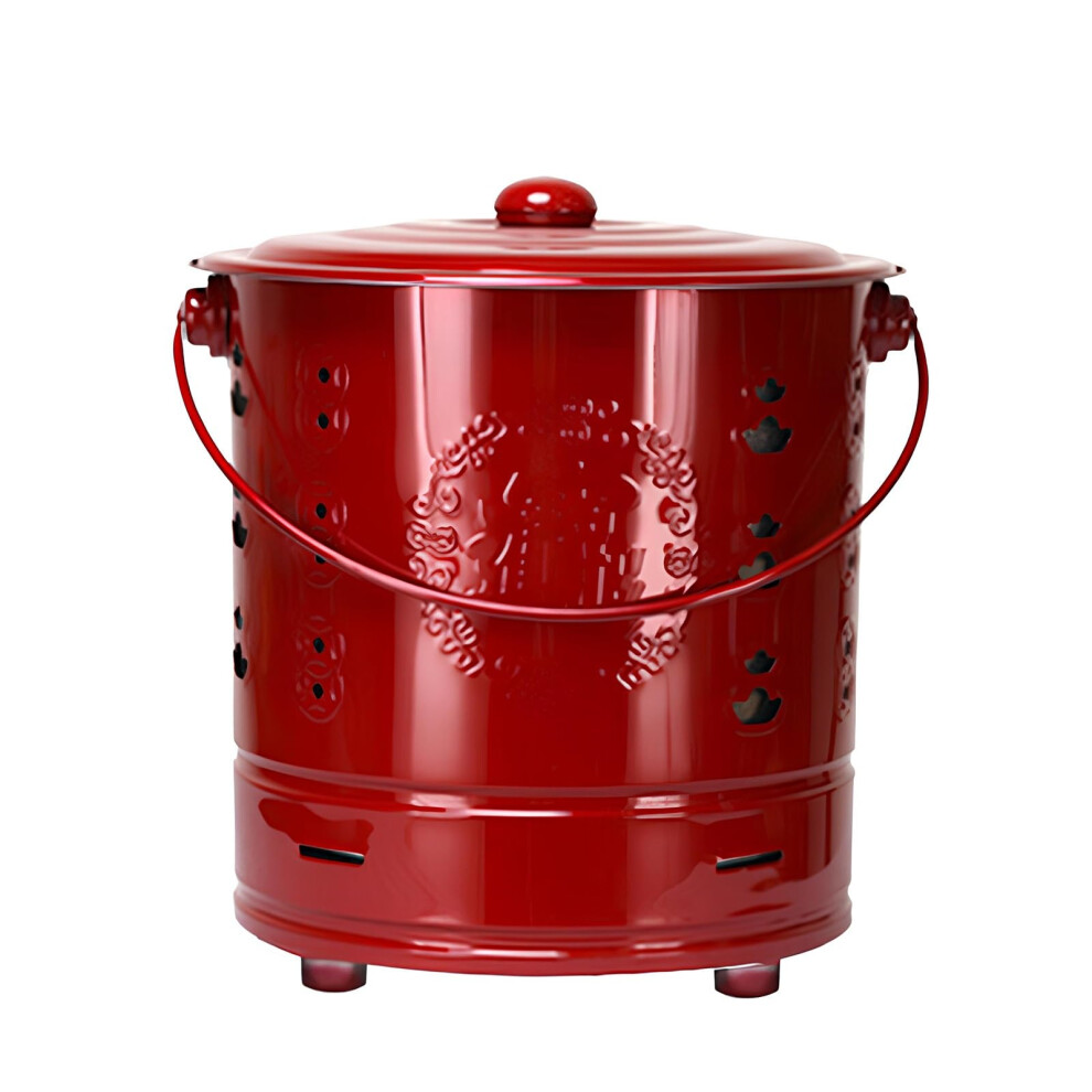 Enamel Incinerator Can for Home Worship Burning, Durable Red Fire Pit Bucket, Portable Outdoor Bonfire Bin for Blessing