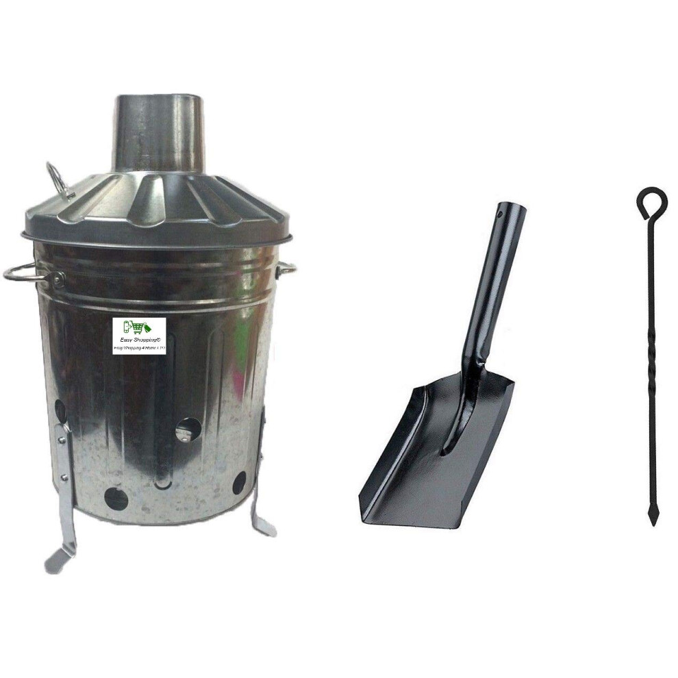 Small Medium Large 15L 60L 90L Litre Metal Galvanised Garden Incinerator Fire Bin Burning Leaves Paper Wood Rubbish Dustbin Shovel and Poker Made in