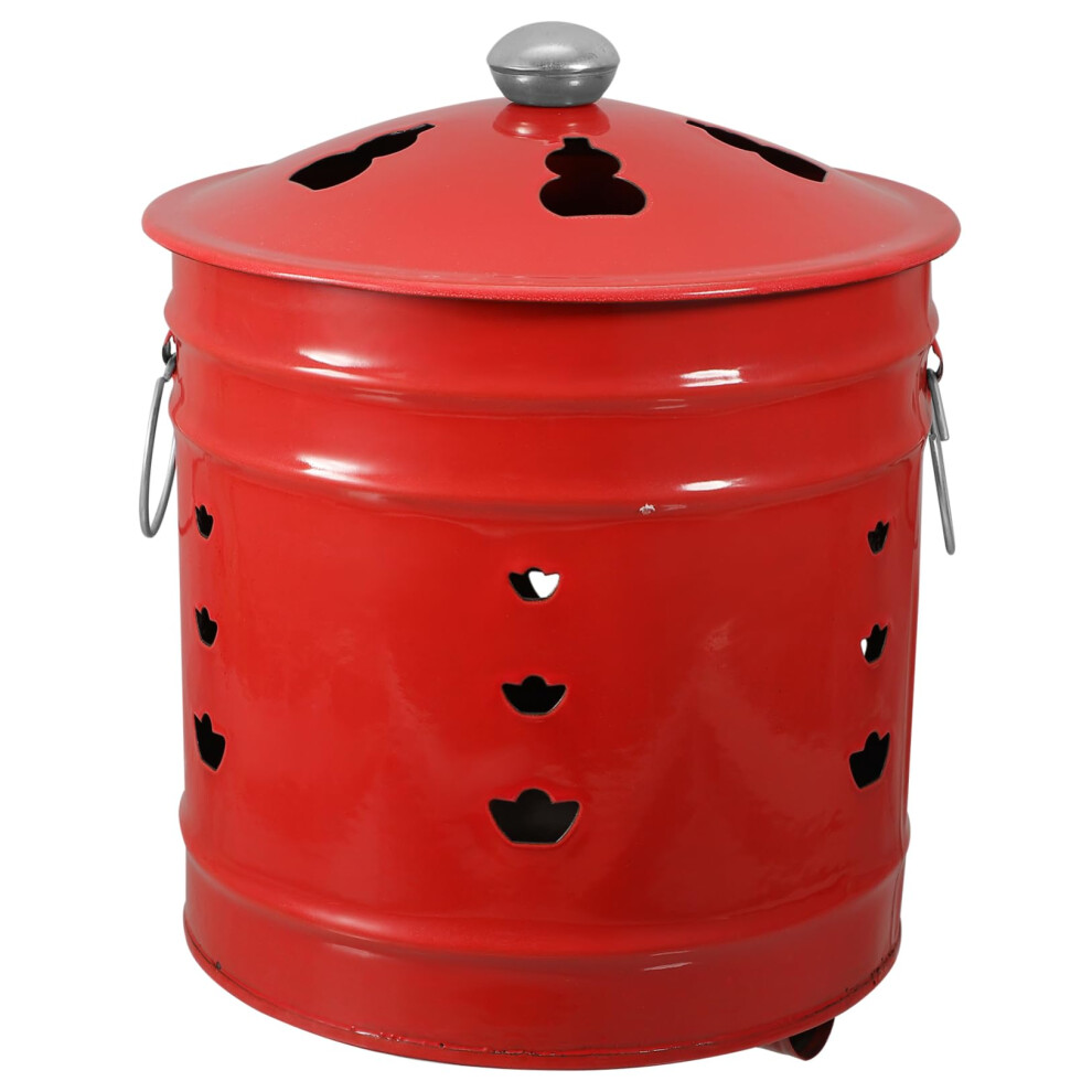 Red Stainless Steel Garden Incinerator Bin with Lid and Tongs for Efficient Outdoor Waste Burning