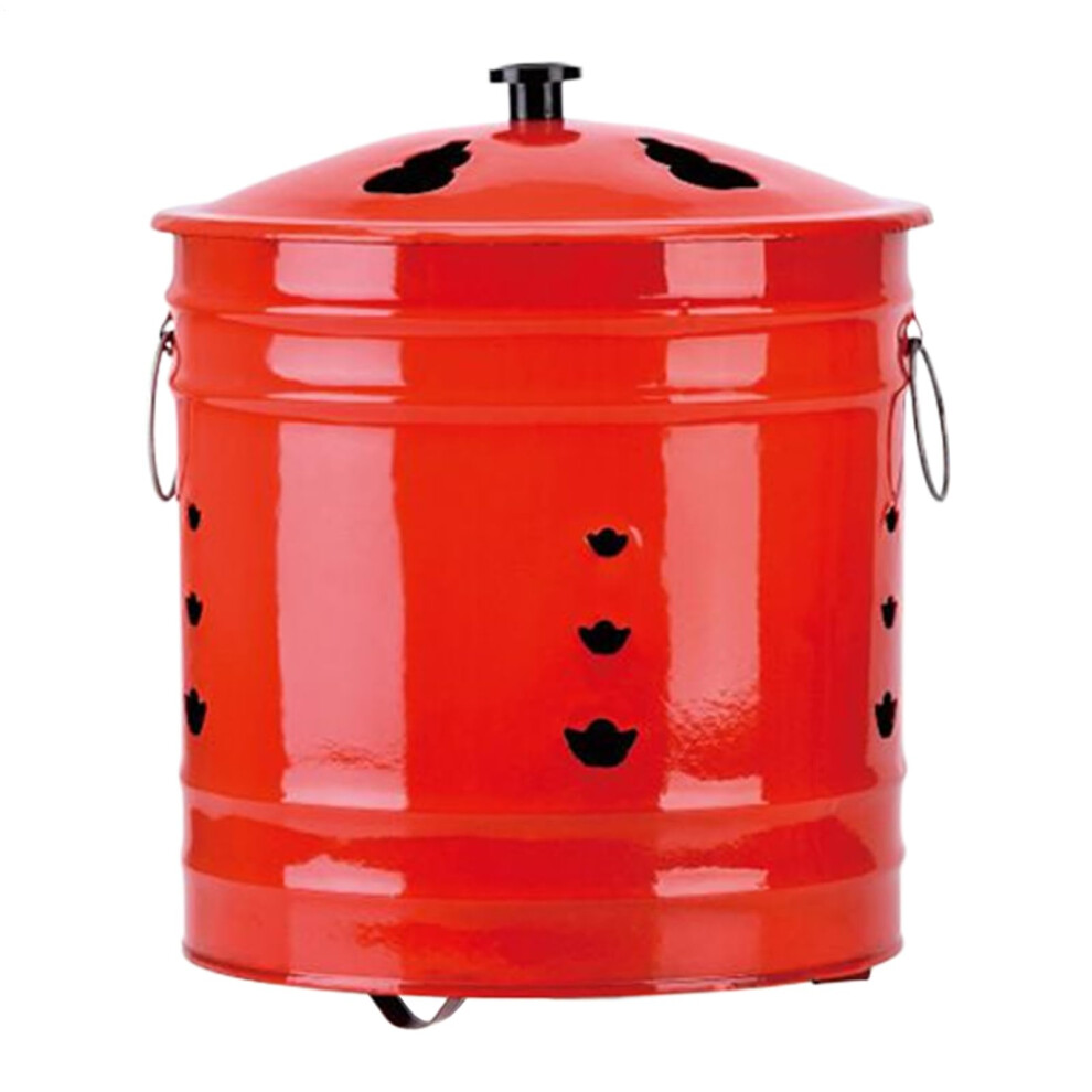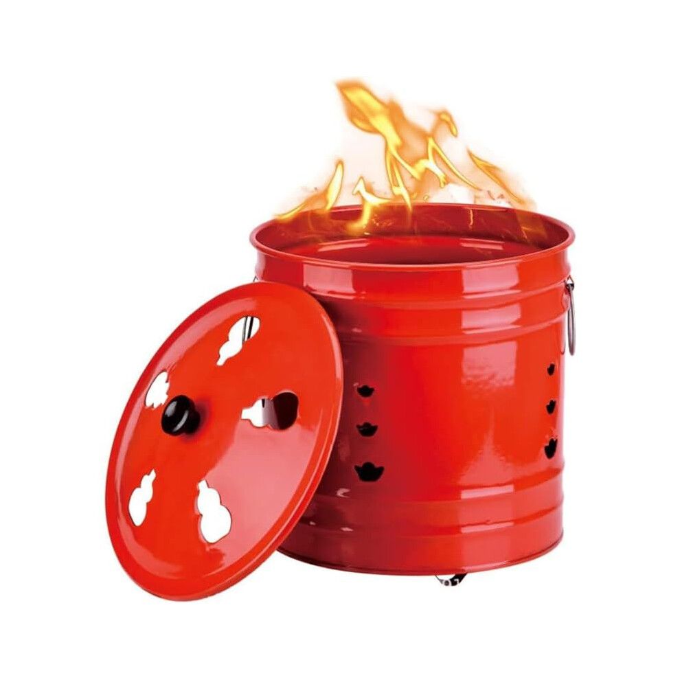 Red Enamel Garden Incinerator Bin for Waste Burning, Compact Outdoor Metal Fire Pit Barrel