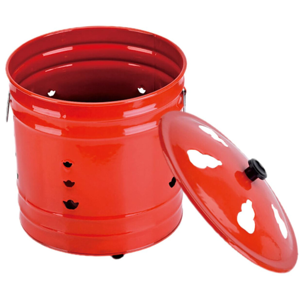 Stainless Steel Burning Bin Outdoor Paper Burner with Fire Hook (Red 45x42cm)