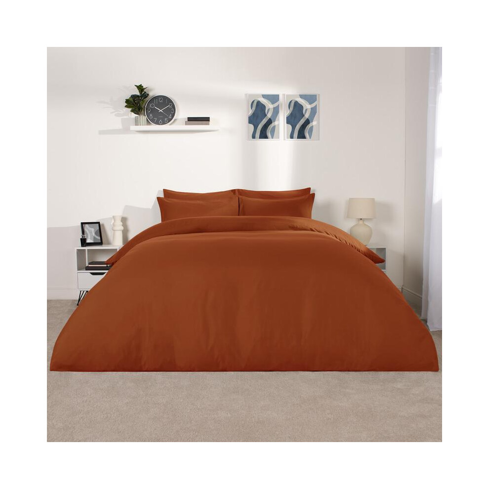 OHS Soft Microfibre Plain Dyed Duvet Cover Bedding Set in Burnt Orange | Size: Super King