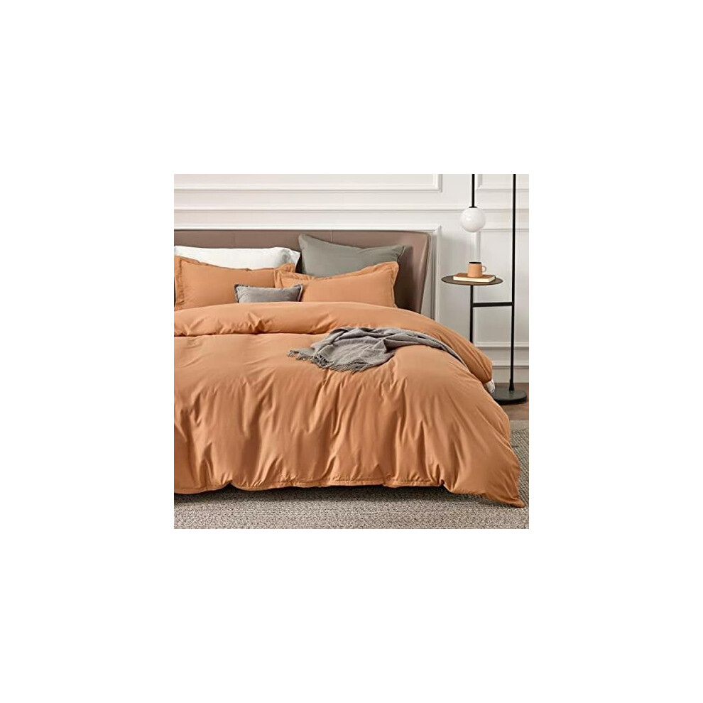Aisbo Double Duvet Set with Sheet - Burnt Orange 4 Pieces Microfiber Bedding Set for Double Bed, Includes Duvet Cover, Fitted Sheet and Pillowcases