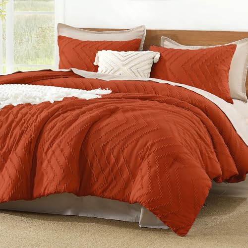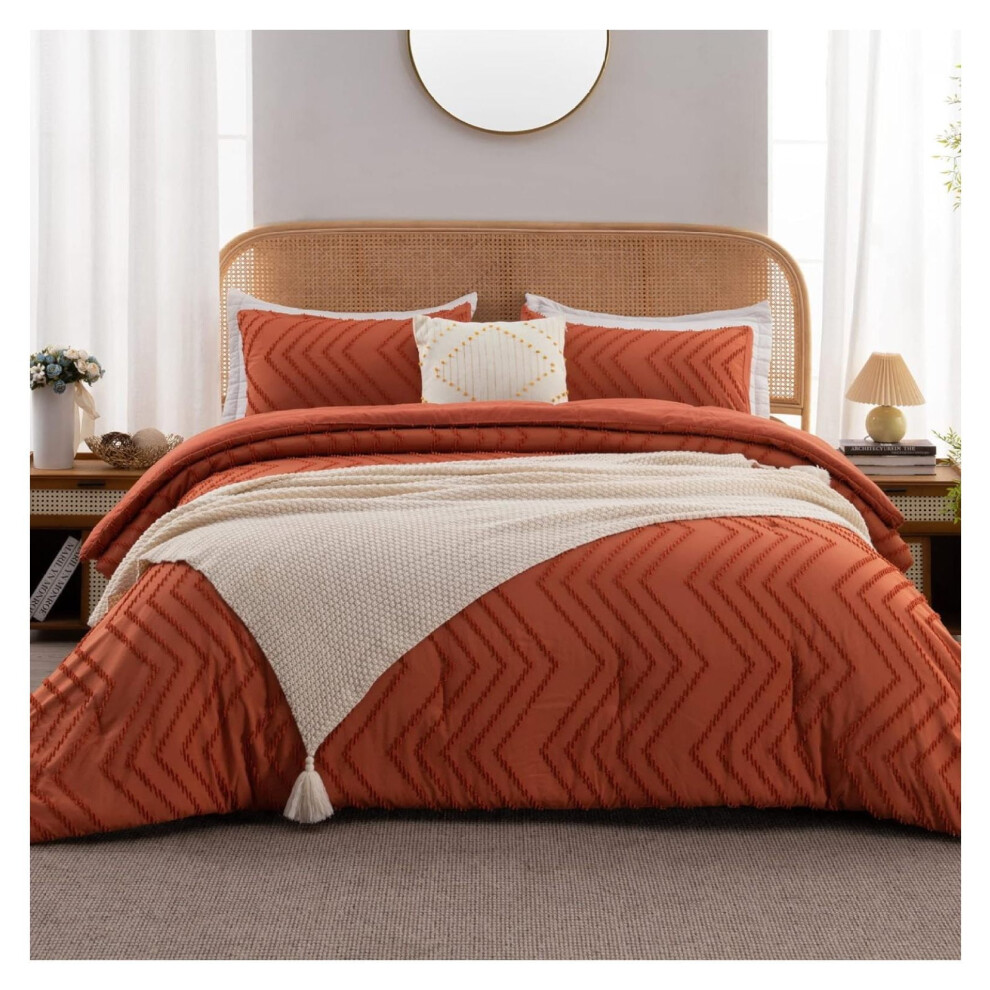 Litanika Comforter King Size Set, Burnt Orange Boho Fall Lightweight Bedding Comforters & Sets for King Bed, 3 Pieces Chevron Tufted Bed Set