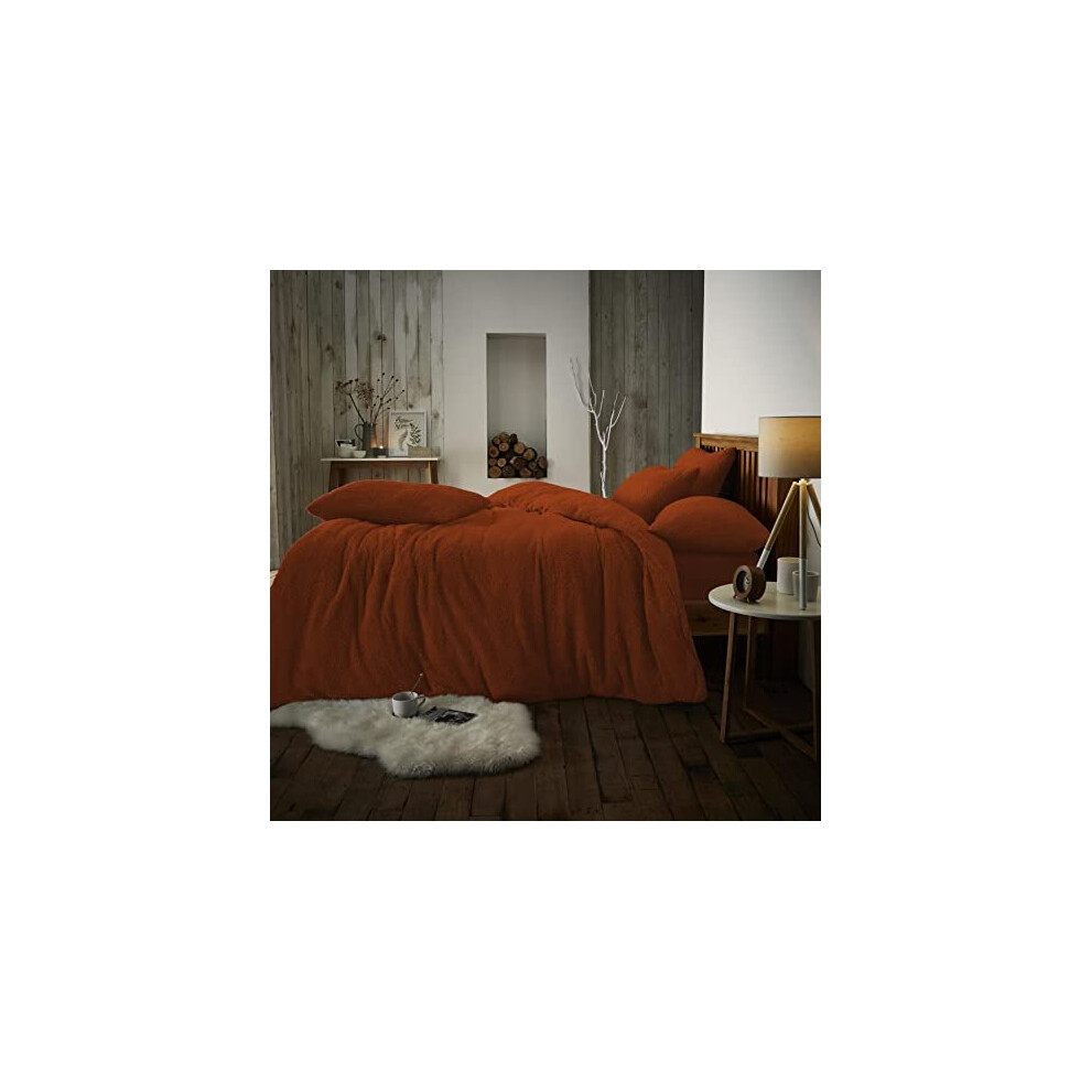 OHS Thermal Soft Teddy Fleece Duvet Cover Bedding Set in Burnt Orange | Size: Super King