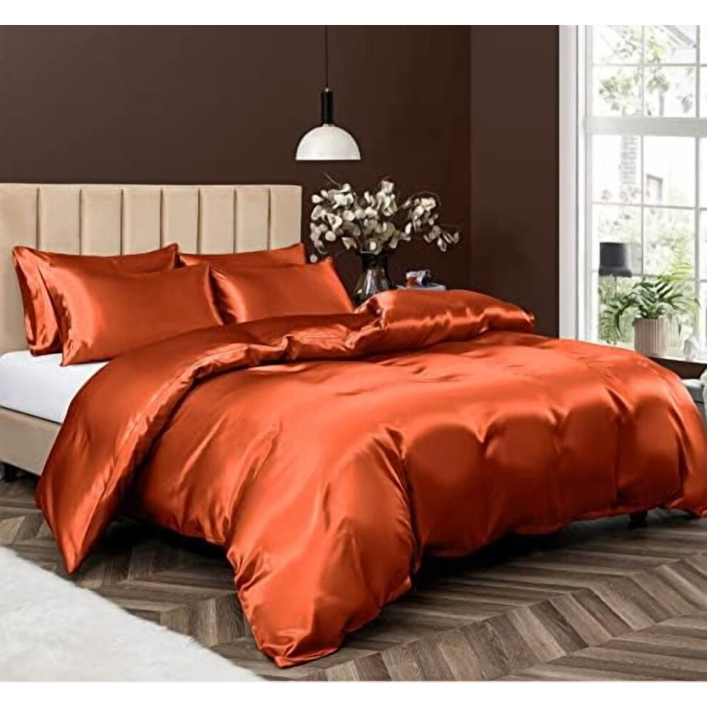 5-Pc Satin Duvet Cover Set Full/Queen, Burnt Orange Luxury Bedding with Zipper, 1 Cover + 4 Pillowcases (No Comforter)