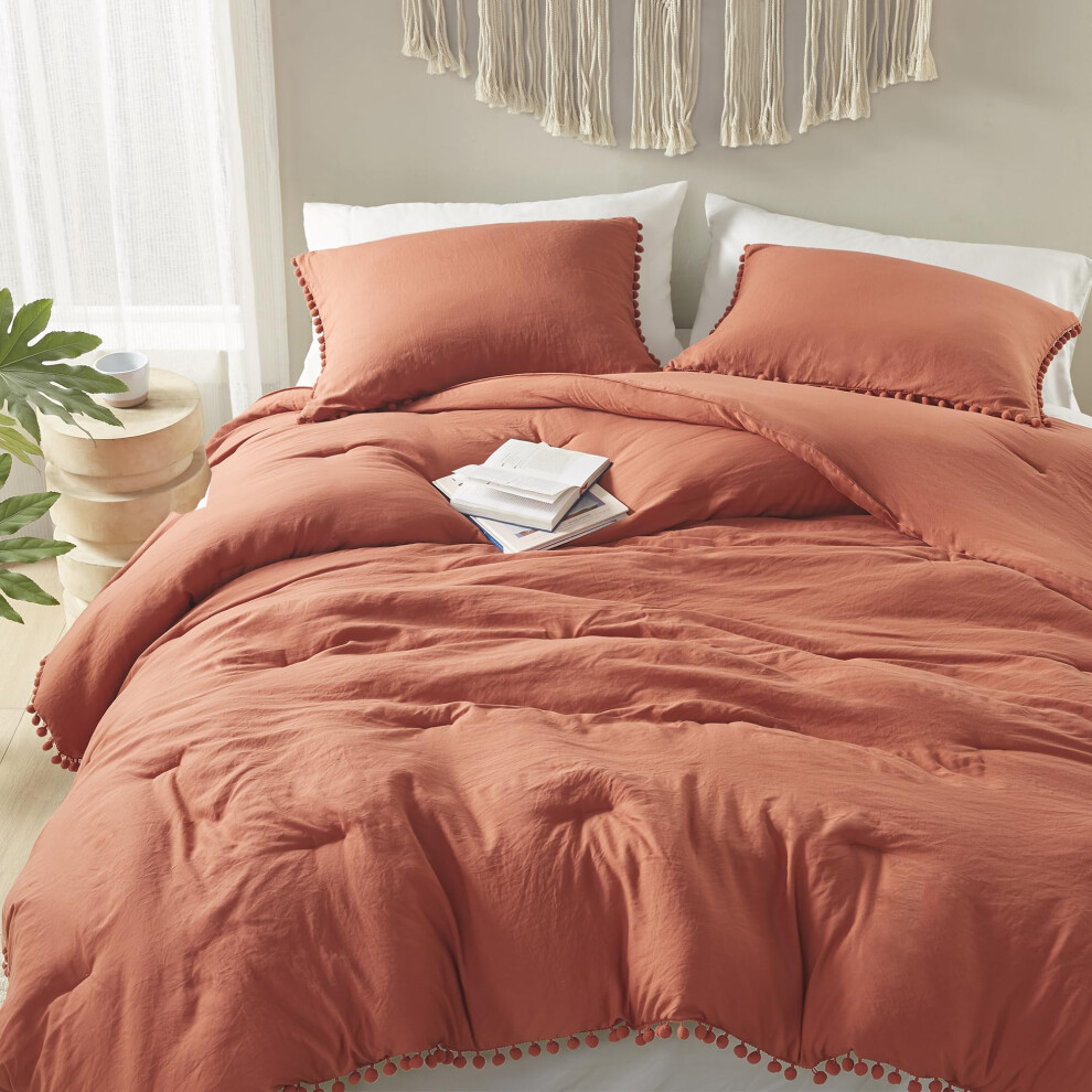 Codi Terracotta Boho King Bedding Set Aesthetic Luxurious Pom Fringe Burnt Orange Comforter Cute Soft Washed Microfiber Bed Sets Lightweight Chic 3