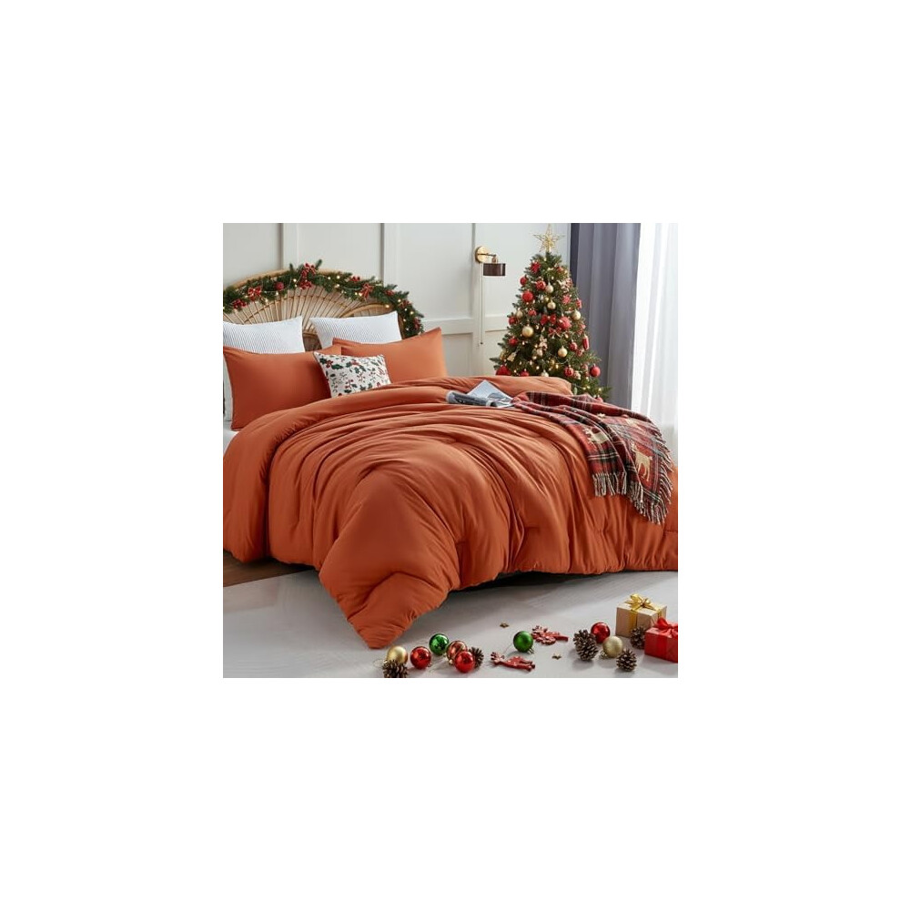 Burnt Orange Queen Comforter Set, 3-Pc Terracotta Fall Bedding, Lightweight Microfiber Down Alternative (1 Comforter + 2 Pillowcases)