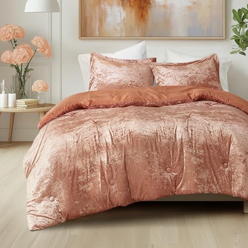 Comfort Spaces Luxe King Comforter Set Velvet Comforters for King Size Bed, Microfiber Reverse, Juliette, All Season Velvet Bedding King Size, Fluffy Bed Set, Sham, King, Burnt Orange 3 Piece