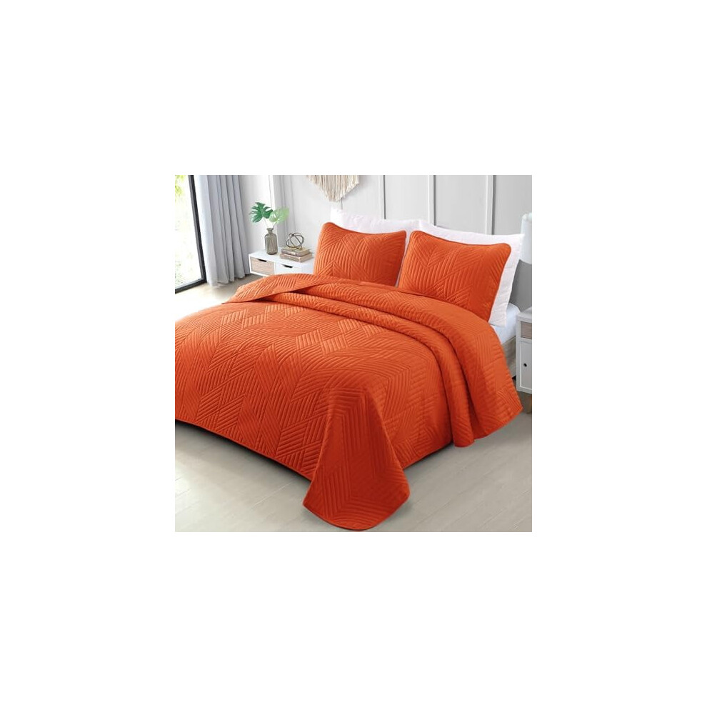 Burnt Orange King Size Quilt Set - Soft Microfiber Bedspread with 2 Shams, Lightweight & All-Season Geometric Coverlet for Cozy Bedding
