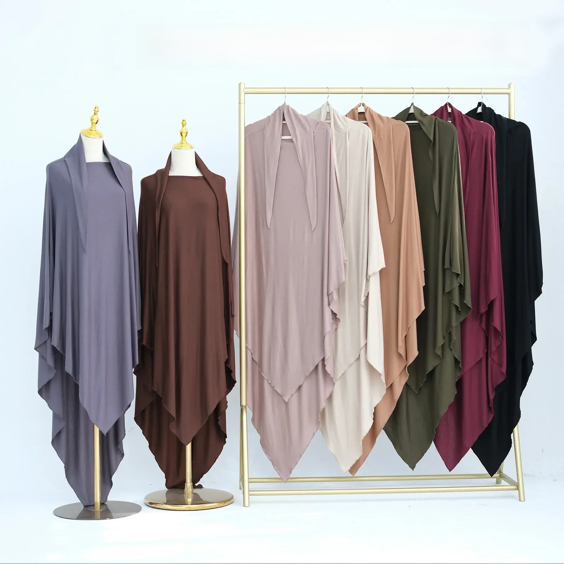 2 Piece Ramadan Muslim Prayer Garment Sets Women Hijab Abaya Jilbab Maxi Dress Khimar Burqa Islamic Clothing Overhead Arab Robe