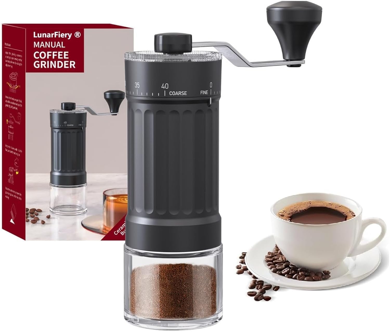 LunarFiery Ceramic Burr Manual Coffee Grinder 40 Adjustable Settings 320g Portab