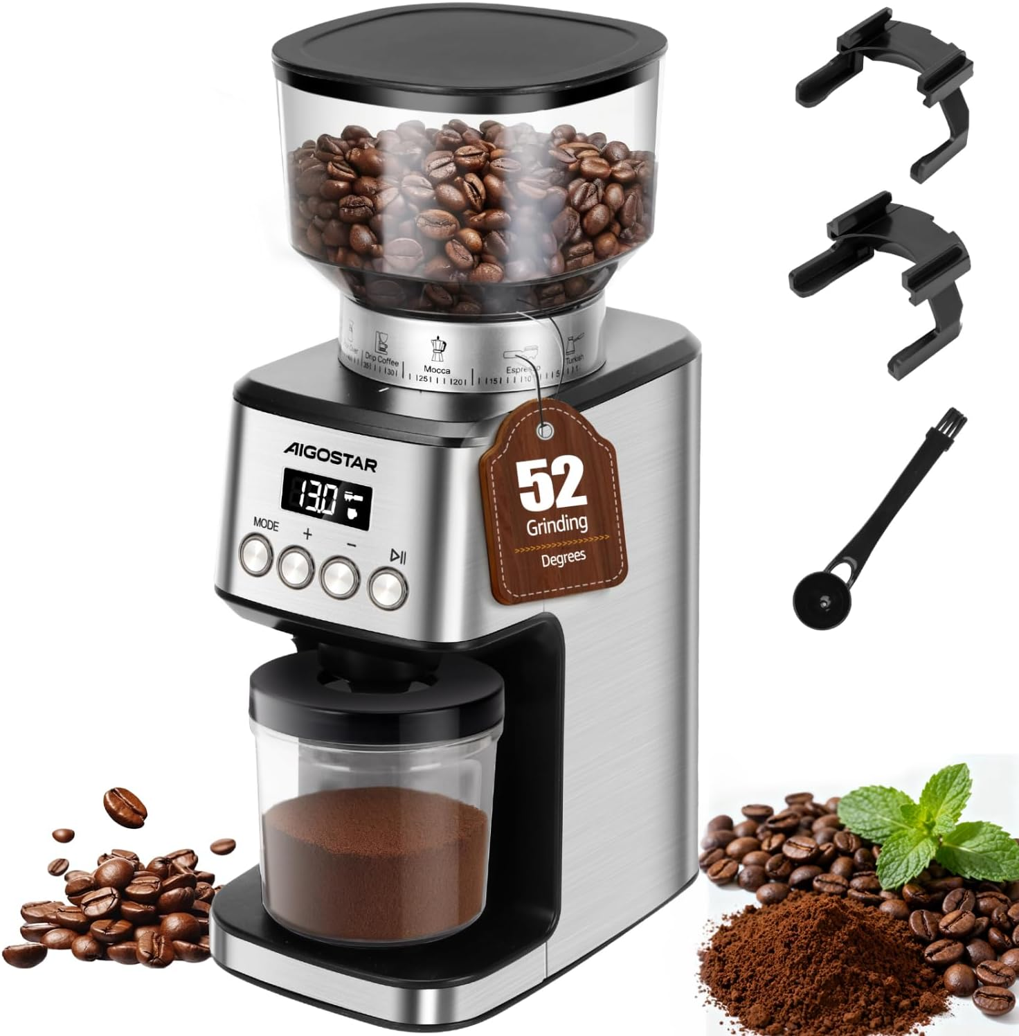 Professional Conical Burr Coffee Grinder - 52 Precise Settings, Electric Burr Mi