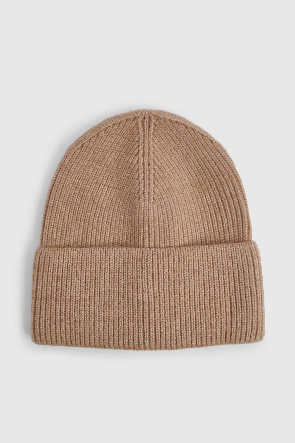 Burton Men Camel Ribbed Knitted Beanie Hat in natural