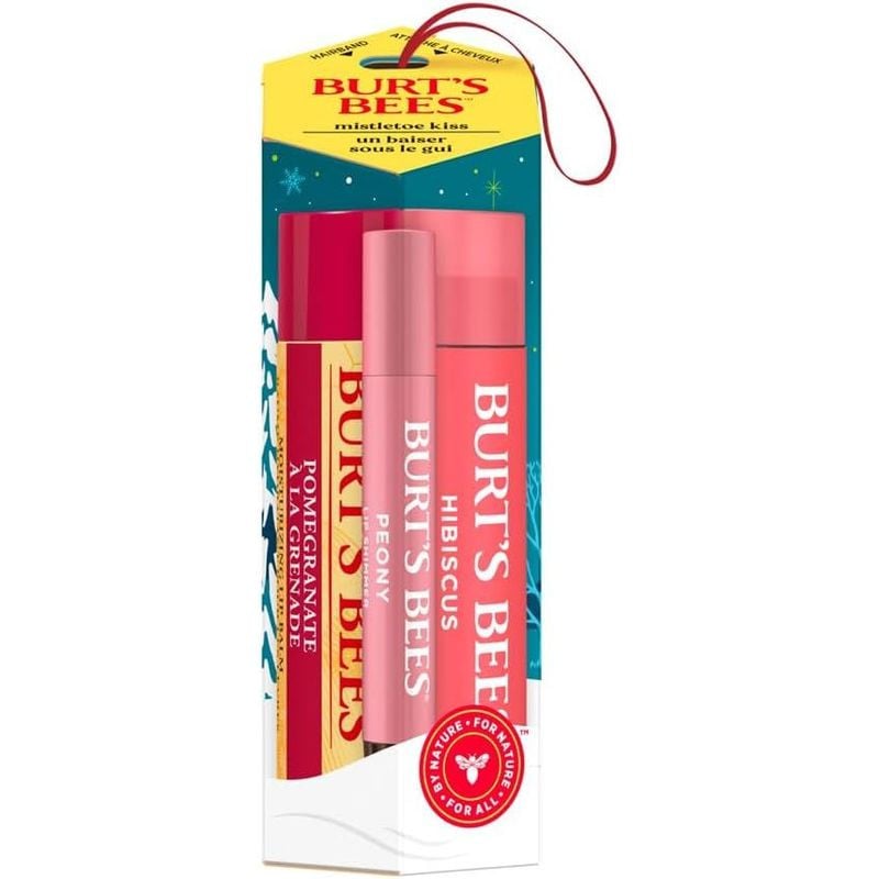 Burt's Bees Moisturising Lip Balm, Tinted Balm and Shimmer, Mistletoe Kiss