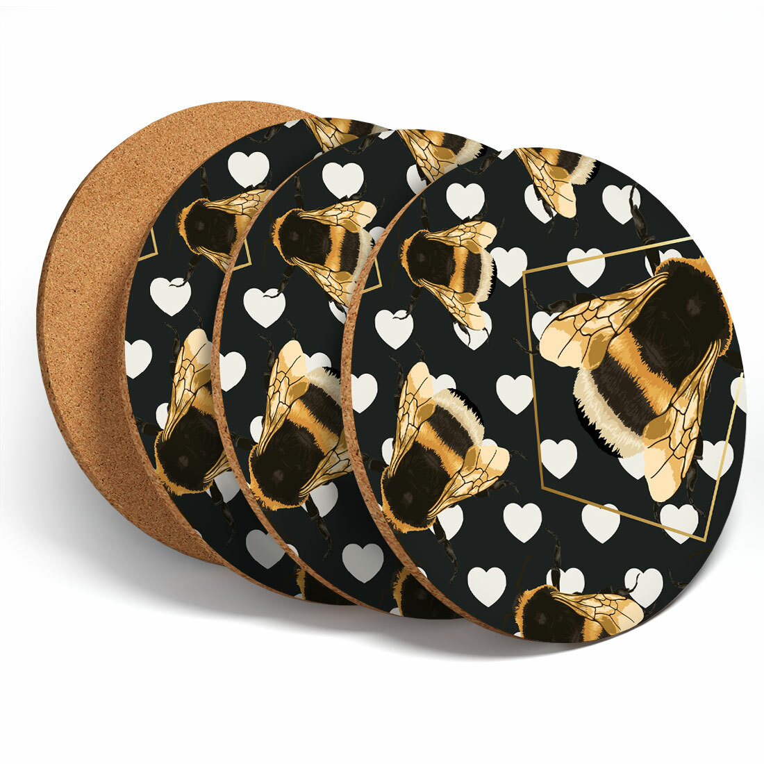 4 Set - Art Deco Gold Bumble Bees Coasters - Kitchen Drinks Coaster Gift #2255
