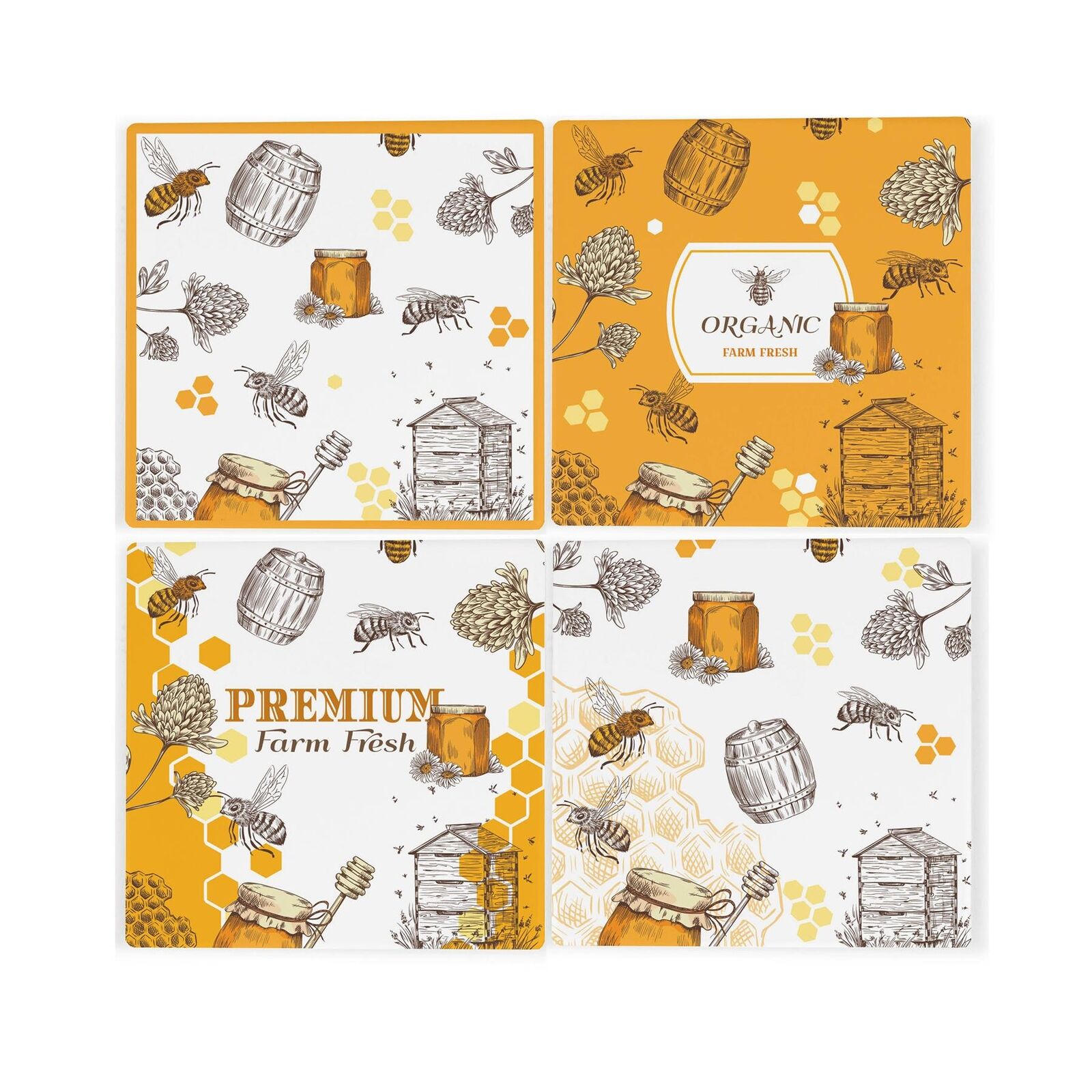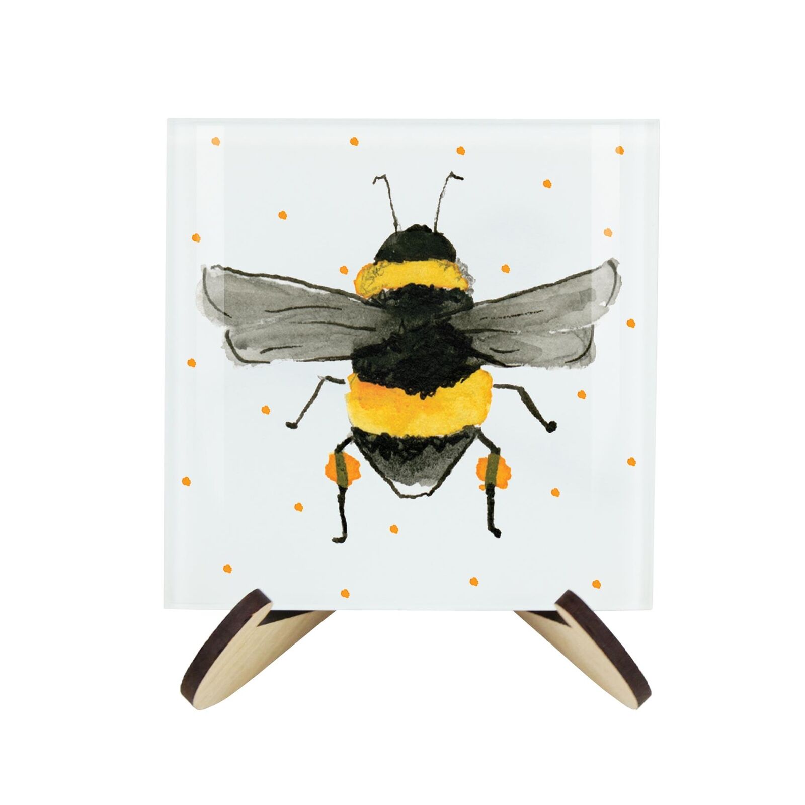 Scattered Bees Glass Coaster Set - Set of Four Square Coasters & Stand Gift