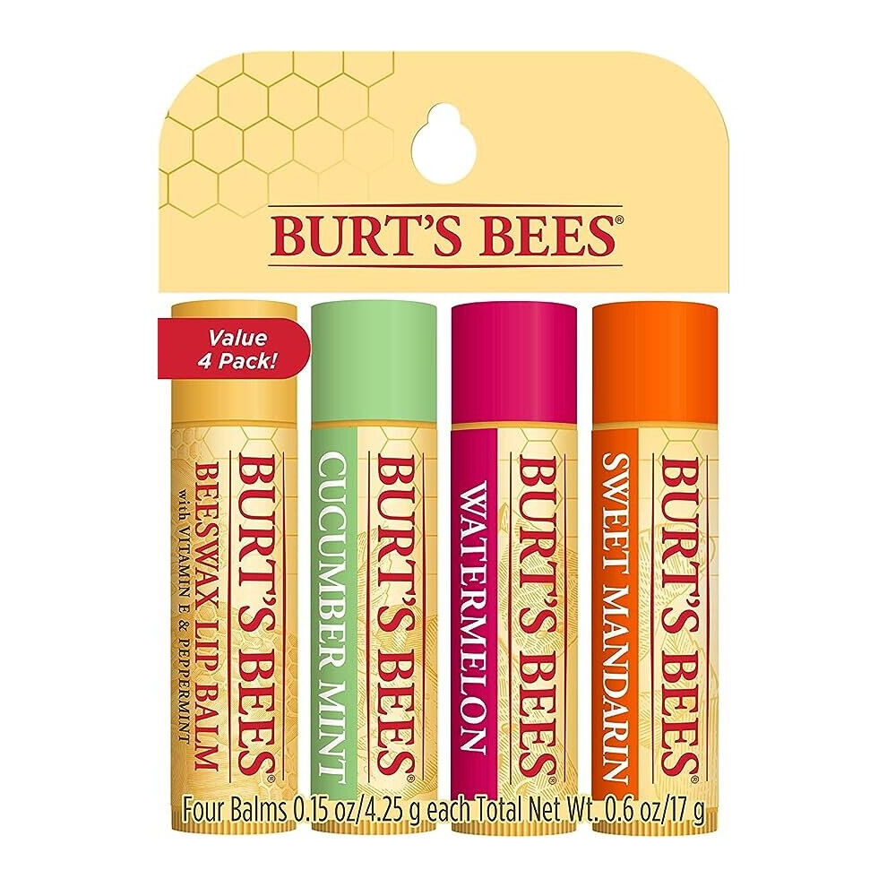 Burt's Bees Lip Balm Multipack, Lip Balm Set With Beeswax, Cucumber Mint, Watermelon, Sweet Mandarin, Freshly Picked, 4x4.25g