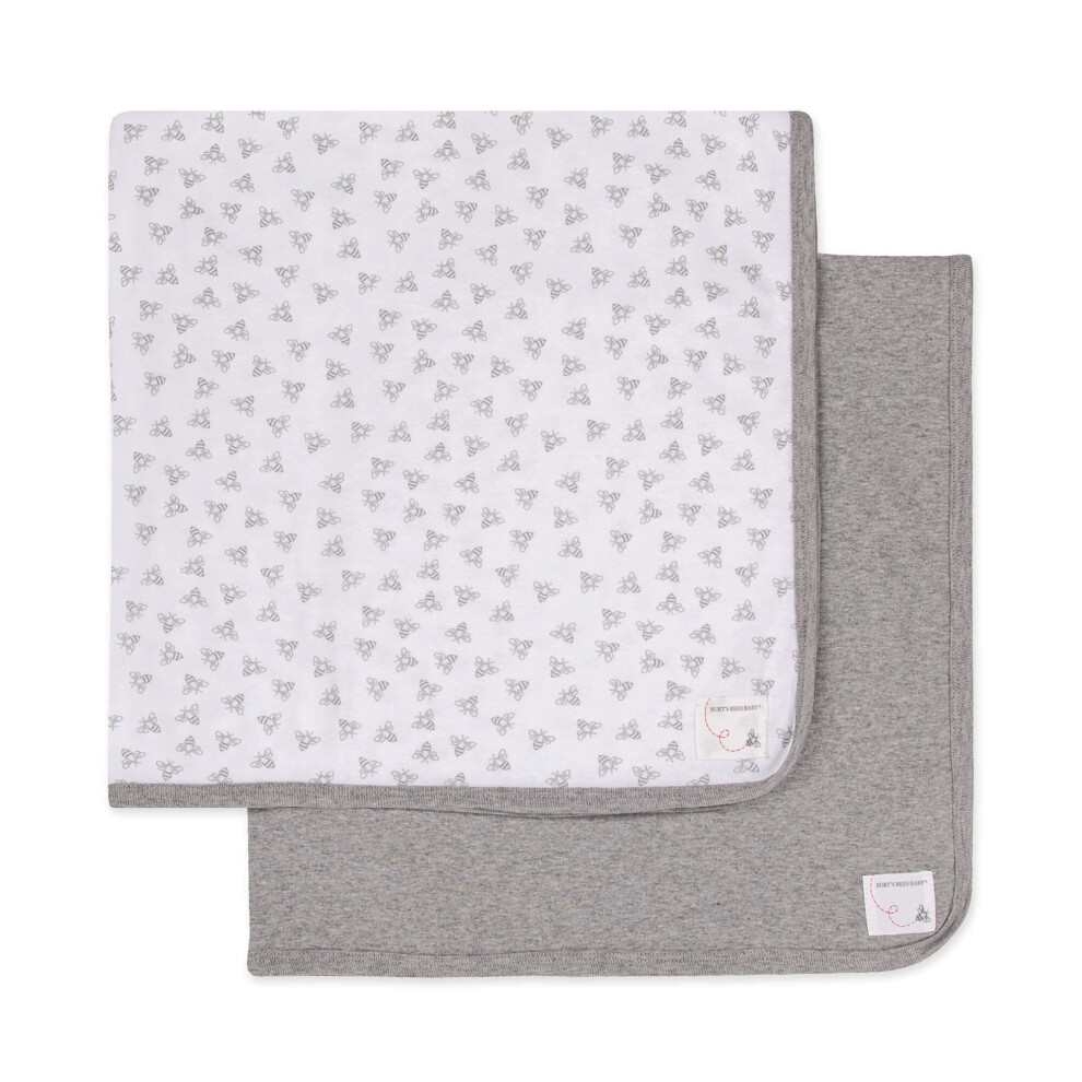 Burt's Bees Baby - Blankets Set of 2 100% Organic Cotton Swaddle Stroller Receiving Blankets (Heather Grey Solid + Honeybee Print) 29x29 Inch (P