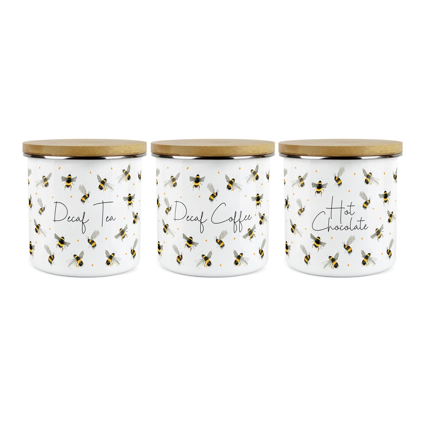 Scattered Bees Decaf Tea, Decaf Coffee & Hot Chocolate Canister Set Kitchen Gift