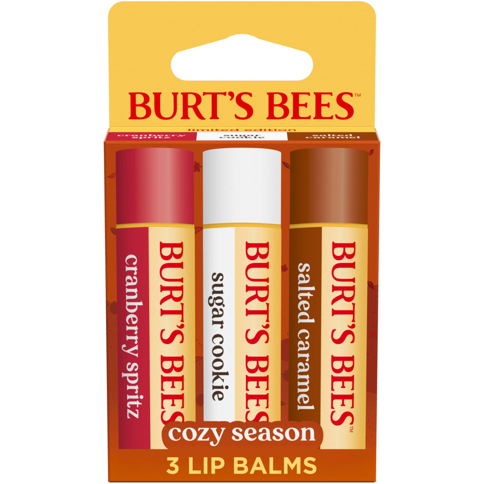 Burt's Bees Stocking Stuffers Cozy Season Lip Balm Set for Christmas Gifts With Responsibily Sourced Beeswax Natural Origin Lip Care 3 Tubes 0.1
