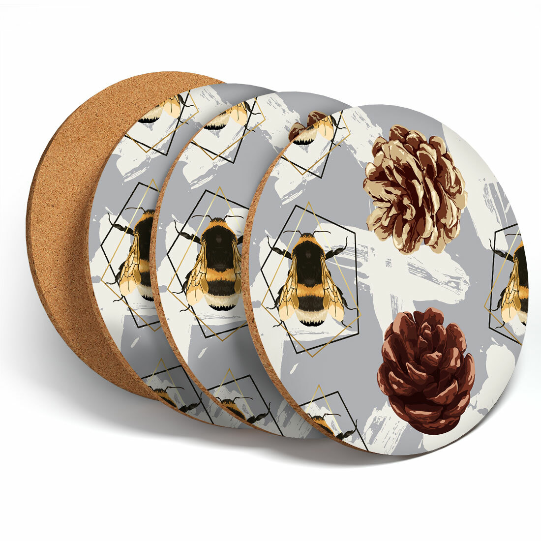 4 Set - Bees & Pinecone Retro Style Coasters - Kitchen Drink Coaster Gift #2140