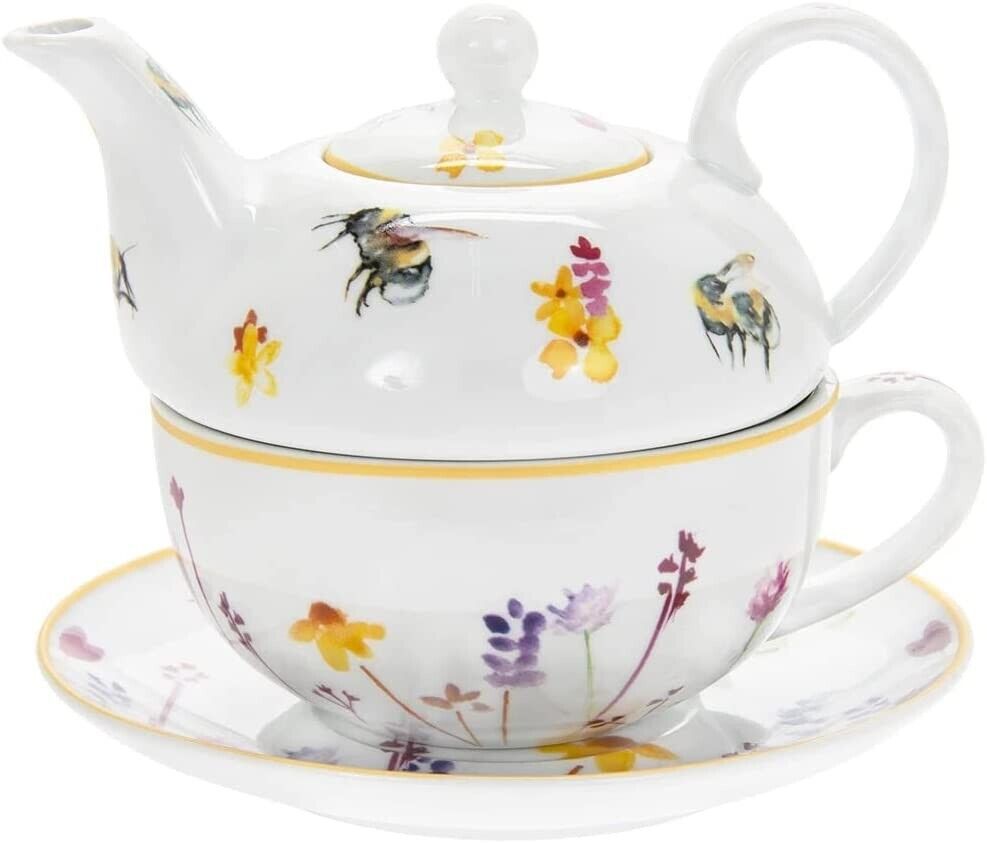 Busy Bees Tea for One Teapot Cup and Saucer Set Gift Boxed