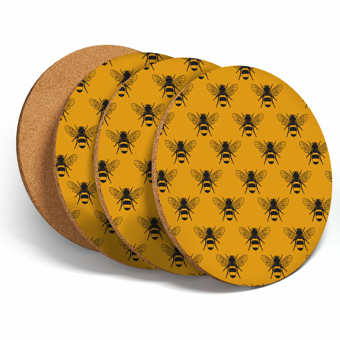 4 Set - Beautiful Bees Pattern Art Coasters - Kitchen Drinks Coaster Gift #3719