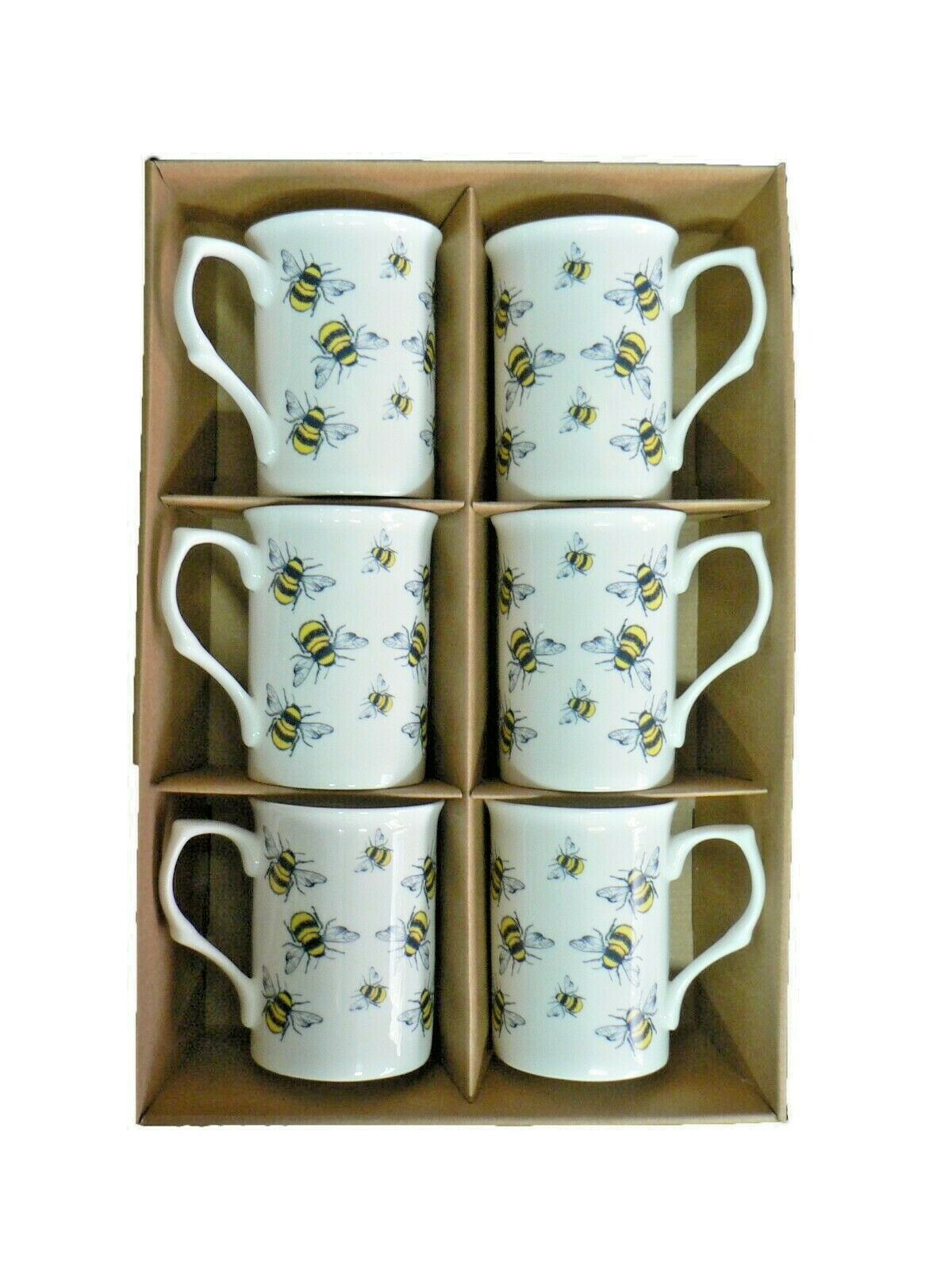 Bees Bone china mugs - set of 6 gift boxed 10oz china mugs Bumble bees