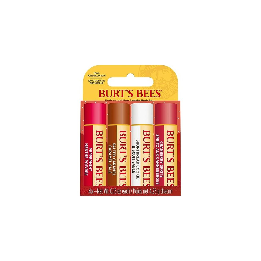 Burt's Bees Lip Balm Gift Set, Shortbread Cookie, Cranberry Spritz, Salted Caramel, Peppermint, Lip Balm Multipack, 4x4.25g