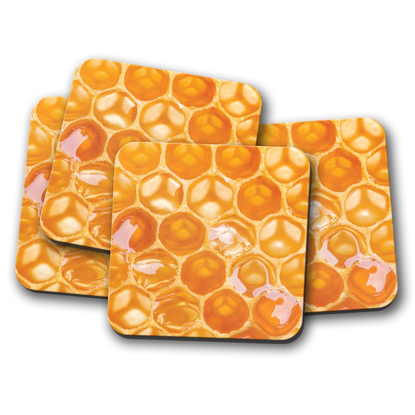 4 Set - Golden Honeycomb Coaster - Bees Hive Bee Honey Mum Auntie Gift #14335