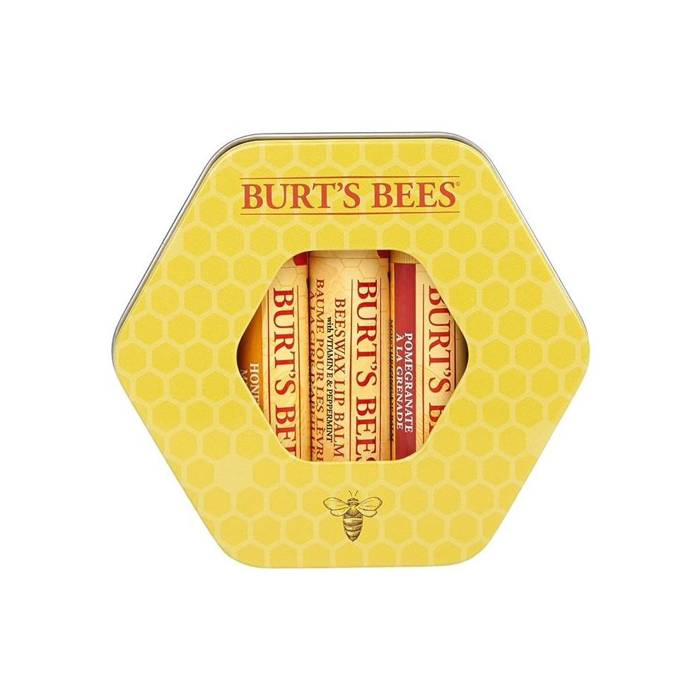 Burt's Bees Lip Balm Gift Set, Beeswax, Honey & Pomegranate Lip Balms, Trio Tin in Reusable Keepsake Tin, 3x4.25g