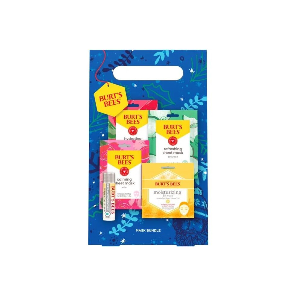 Burts Bees Mask Bundle Lip Balm Lip Mask and Face Sheet Mask Gift Set 5 Pieces Rose