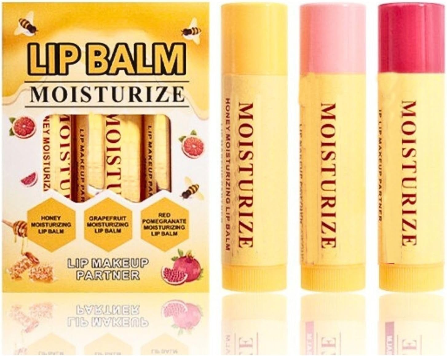 3 Pcs Lip Balm Gift Set,Bees Lips Balm Multipack with 3 Fruity Flavours Natural