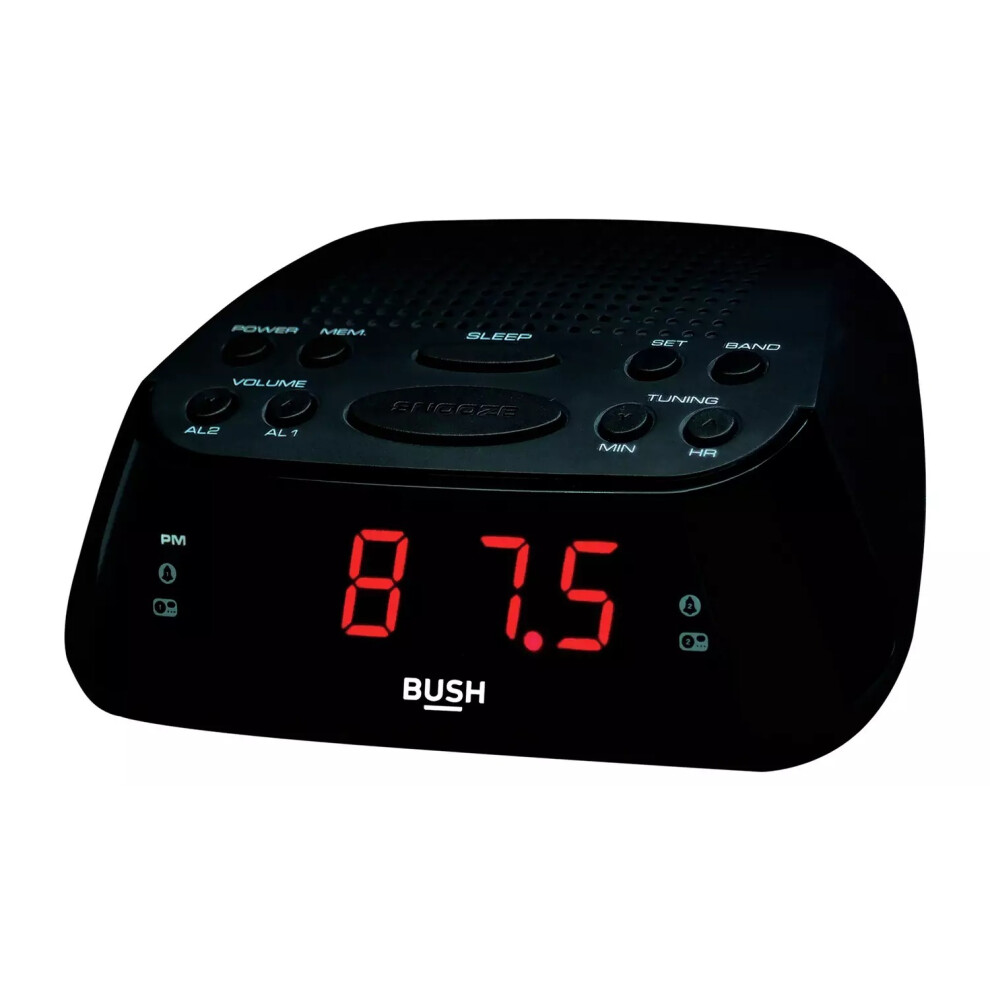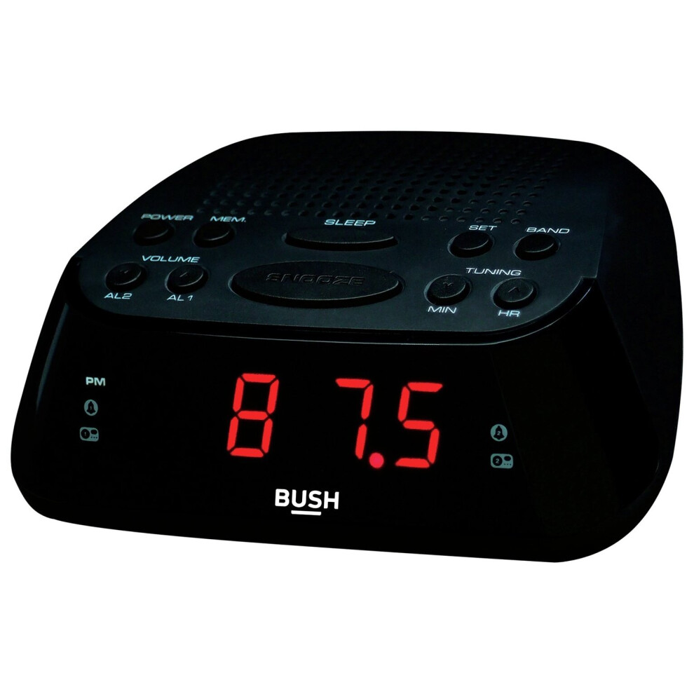 Bush Dual Alarm Sleep Timer Large Display Clock Radio with FM/ AM and Snooze-UK