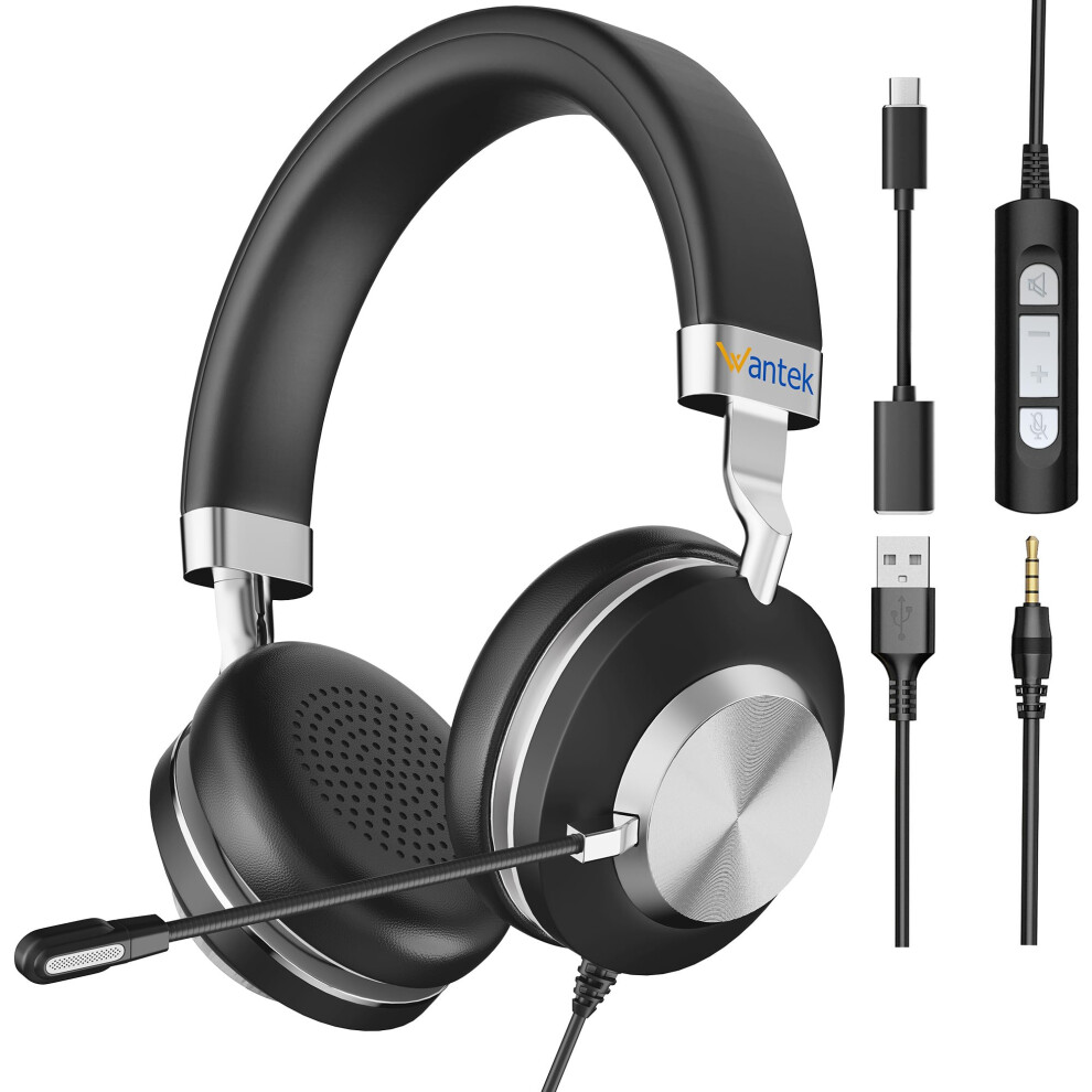 Wantek USB Headset with Microphone for PC Laptop, Noise Cancelling Business Office Headsets For Call Center Working Team Meeting Online Conference