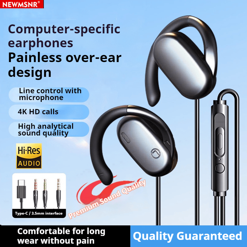 For Business Open Ear Type C&3.5mm Wired Headphones Stereo Sound Sports Earbuds Gamer Headsets with HD mic Earphones For Samsung