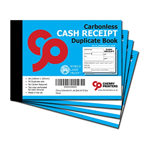 Cherry Printers | Carbonless Cash Receipt Book 2pt A6 | Duplicate NCR Receipt Book | 50 Duplicate Sets | No Carbon Required (NCR) | Perforated Tear Out Receipts | Small Business Receipt Pad