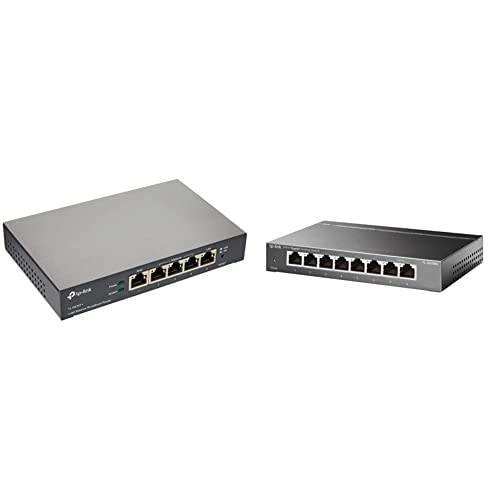 TP-Link Load Balance Broadband Business Router with Up to 4 WAN Ports, Grey & 8 Port Gigabit Ethernet Network Switch, Ethernet Splitter, Hub, Desktop and Wall-Mounting, Sturdy Metal, Fanless