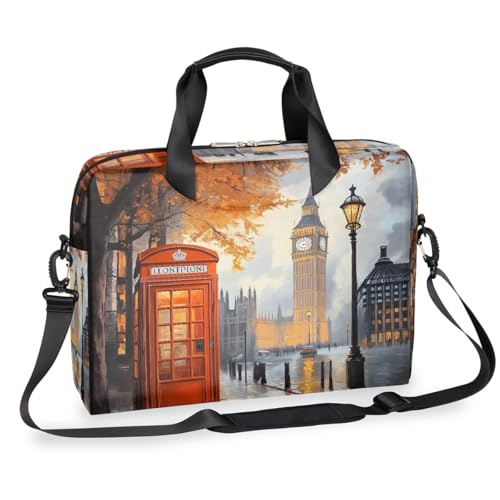 Helhappy 15.7-Inch Laptop Computer PC Shoulder Bag Carrying Case, Red Telephone Booth Retro Romantic City Scenery Waterproof Business Office Work Messenger Bag for Men Women