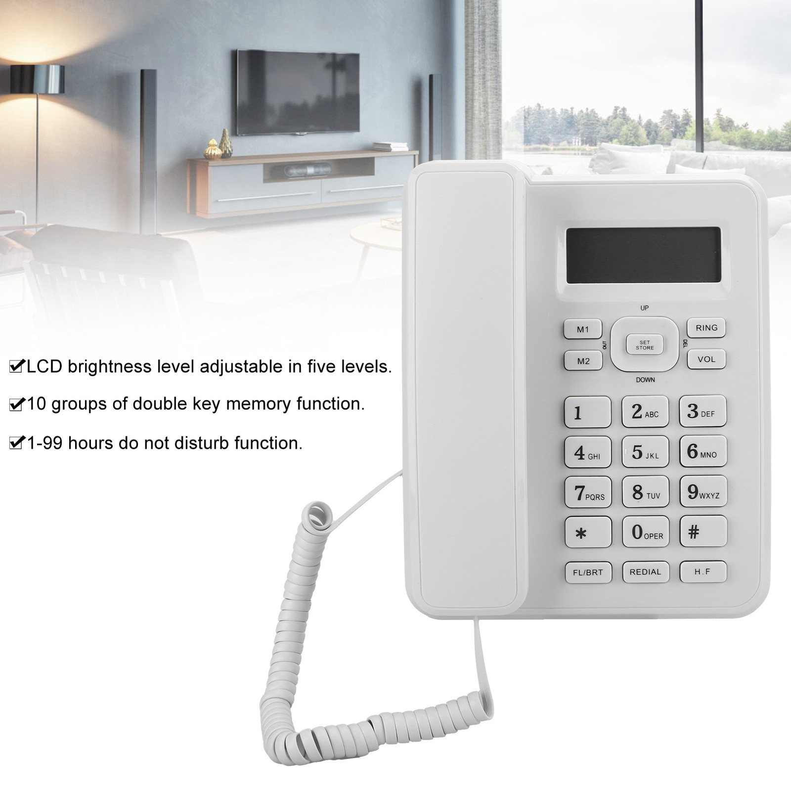 Home Desktop Corded Telephone LCD Display Hands Free Caller ID Alarm Clock Business Landline Telephone for Home Hotel