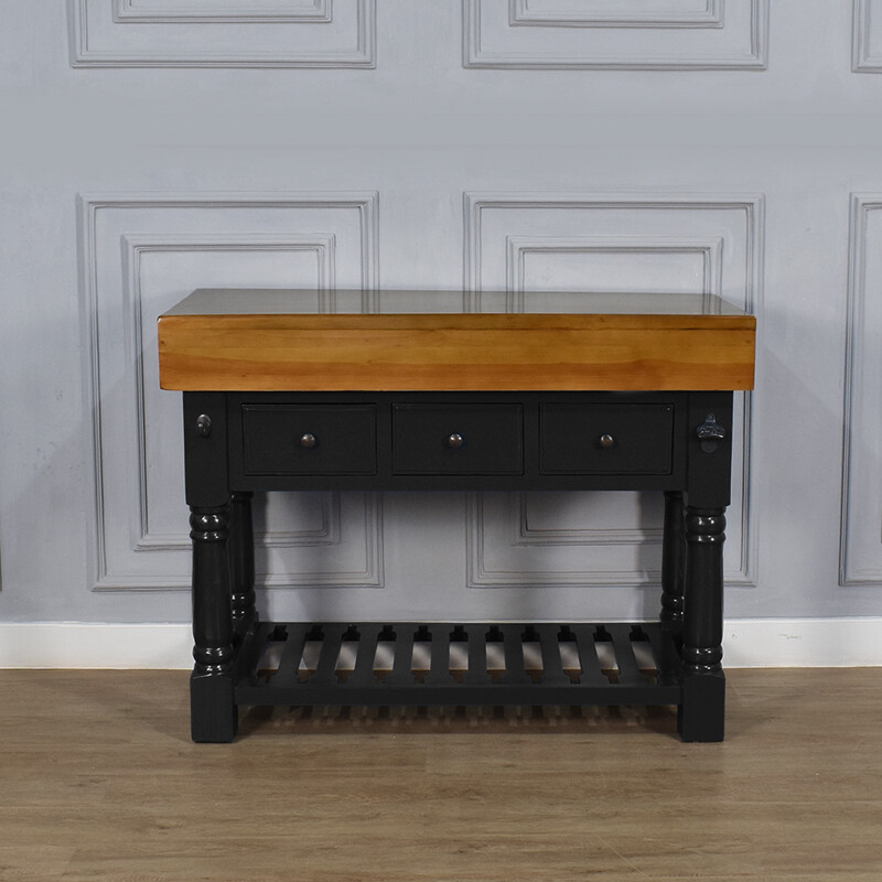 Kitchen Island, Butchers Block , Three Drawers , Handmade , Black Colour