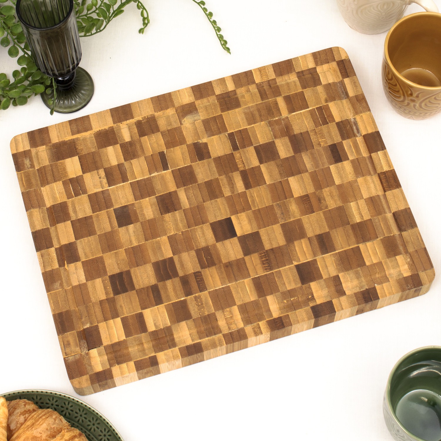 Large Bamboo Chequered Chopping Board Butchers Block Thick Juice Groove Handles