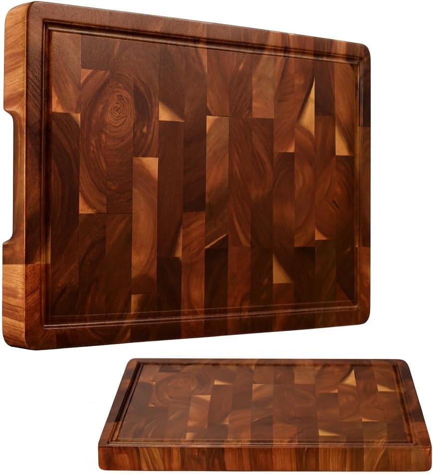 End Grain Acacia Wood Butchers Block Rectangle Thick Wooden Food Chopping Board