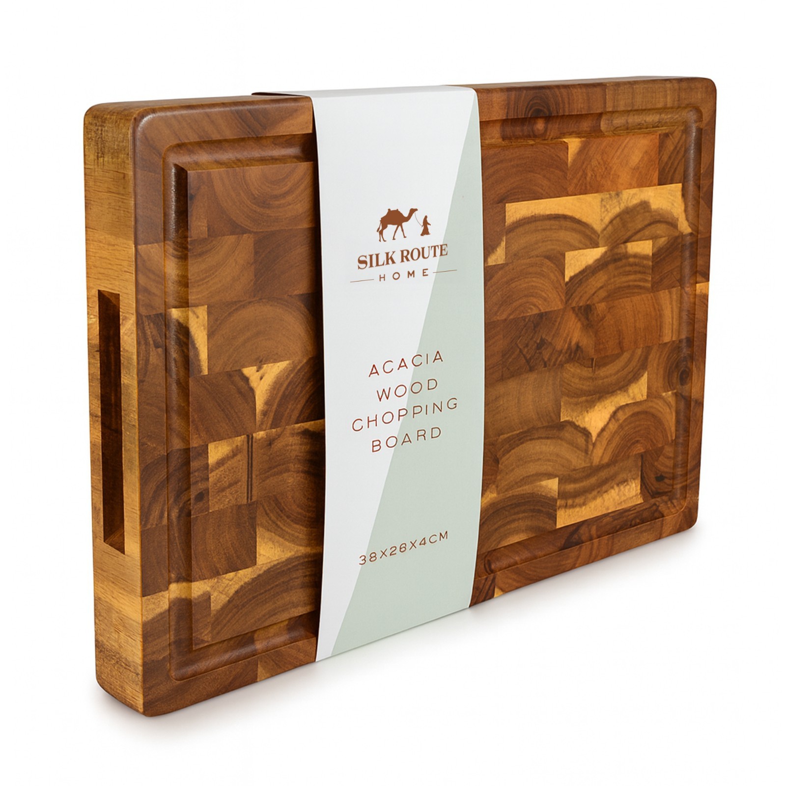 Acacia Wood Chopping Board, Butchers Block L, 38cm W, 26cm D, 4cm by Silk Route