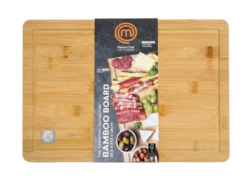 MasterChef Large Chopping Board Bamboo Butchers Block 38.5cm x 27.5cm x 1.8cm (18" x 10.5" x 0.5"), Heavy Duty XL Wooden Cutting Surface with Deep Juice Groove, Food Safe & Eco-Friendly