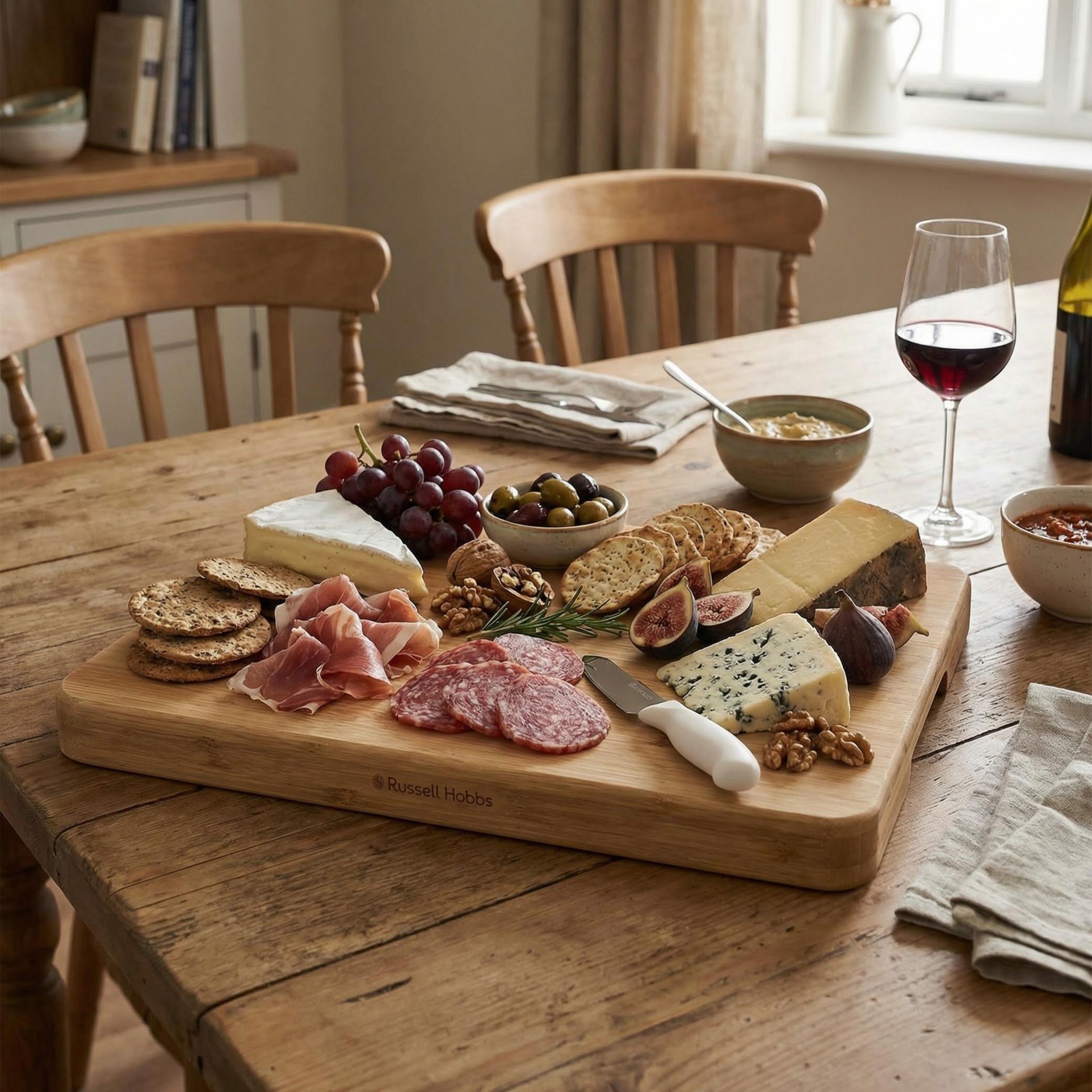 Russell Hobbs Element Wooden Chopping Board – FSC®-Certified Bamboo Cutting Board, Hand Groove for Easy Lifting, Butchers Block, Charcuterie Serving Tray, Protects Kitchen Worktops