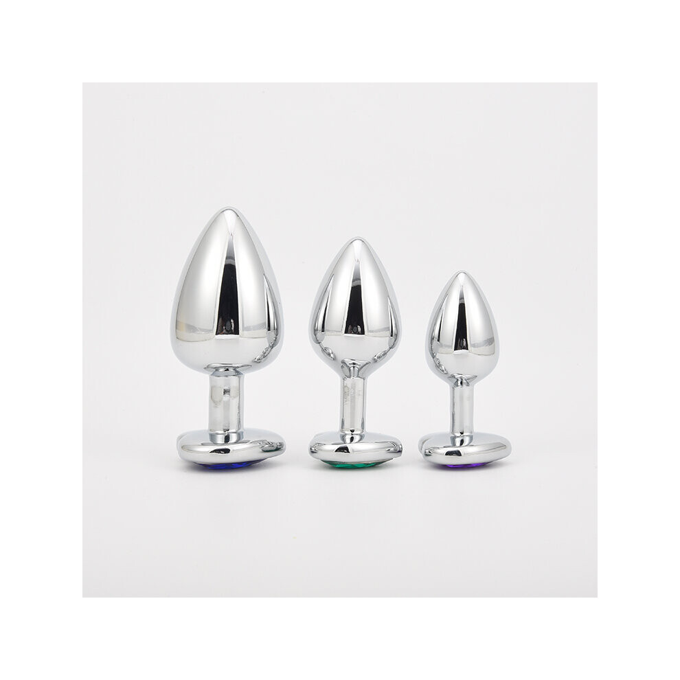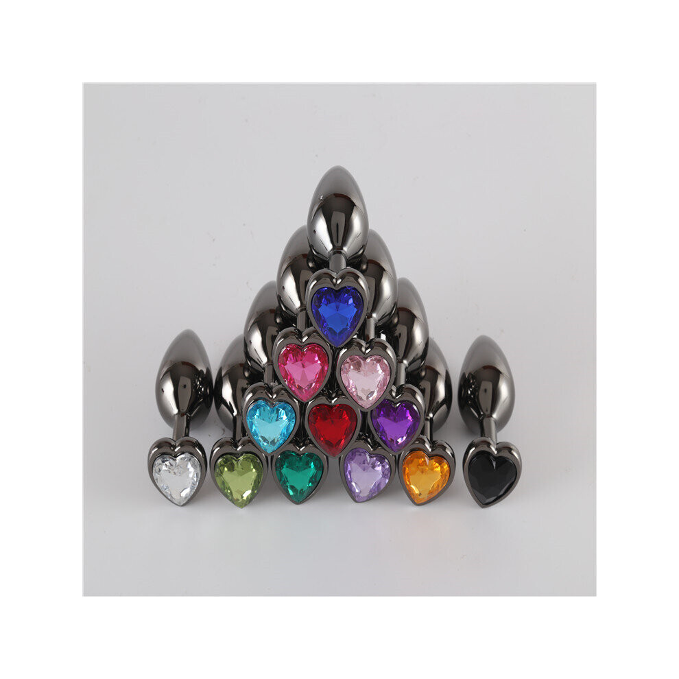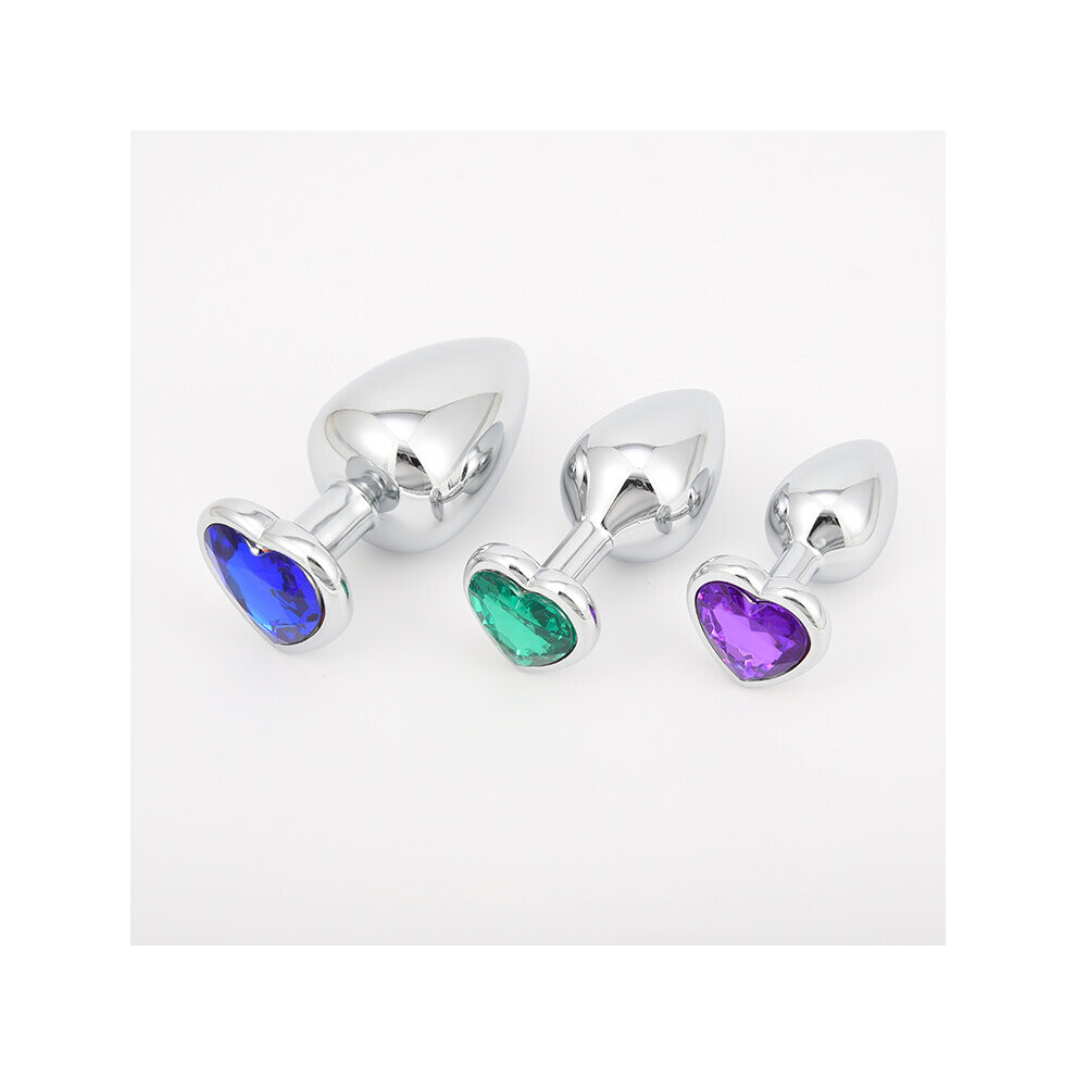 The Room Of Doom's - 3 Space Grey, Heart Shaped Jewelled Butt Plugs - Deep Purple