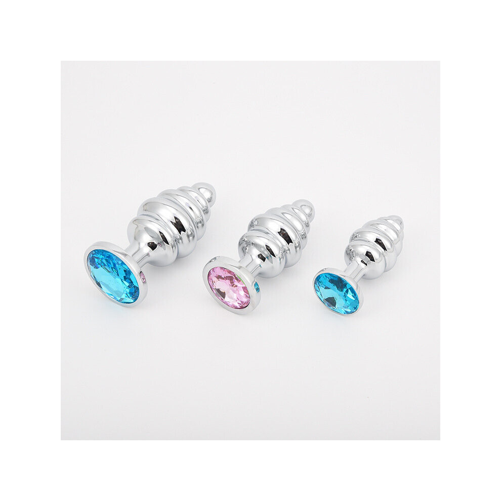The Room Of Doom's - 3 Twisted, Jewelled Butt Plugs - Sapphire Blue