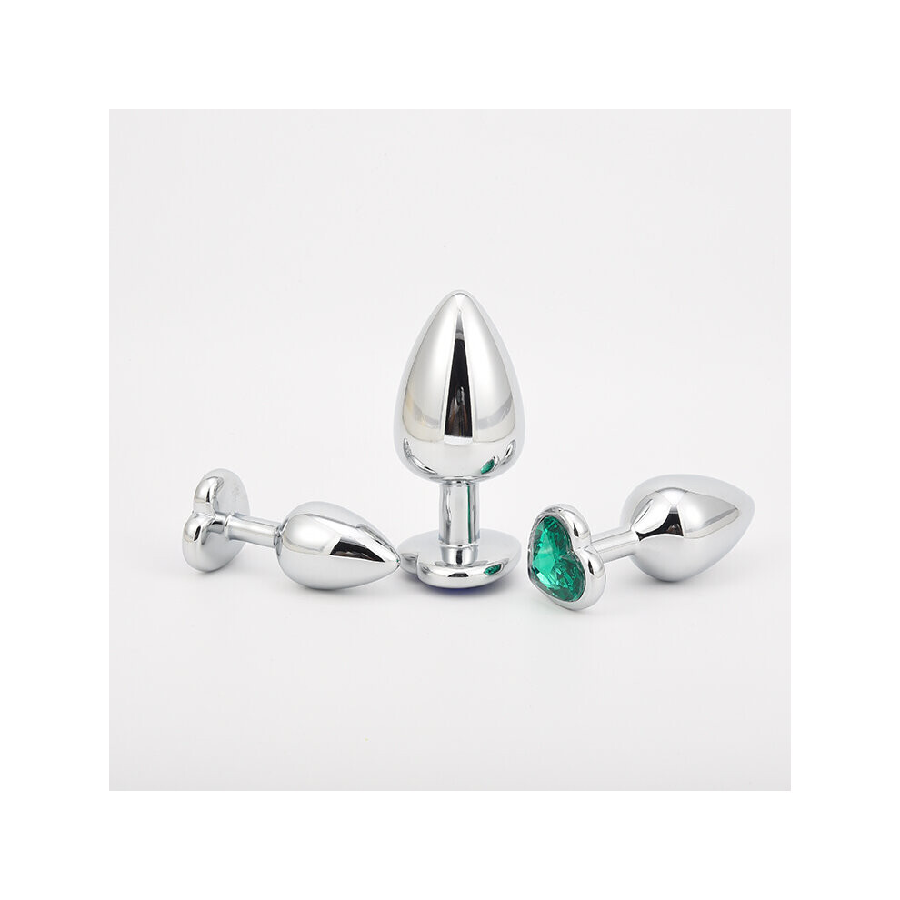 The Room Of Doom's - 3 Heart Shaped Jewelled Butt Plugs - Emerald Green